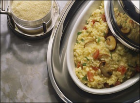 2. In a medium saucepan, heat stock to a boil; then lower the temperature to simmer while preparing risotto.