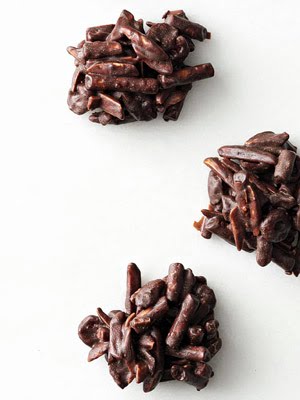 4. Stir cranberry mixture into chocolate until completely coated. Place 1 heaping tablespoonful of chocolate mixture onto