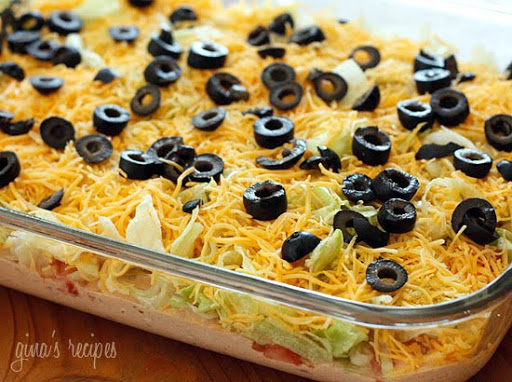 In a large bowl combine cream cheese, sour cream, salsa and taco seasoning and mix well with an electric mixer. Spread on the bottom of a large shallow glass dish. Top with shredded lettuce, tomatoes, shredded cheese and black olives. Serve with baked tortilla chips.