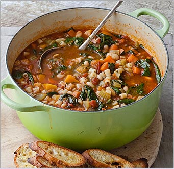 Discard the bay leaf. Add the beans and cooked pasta and heat through. The soup should be quite thick but if it’s too thick,