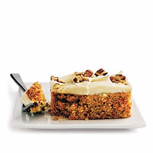 2. To prepare cake, weigh or lightly spoon flour into dry measuring cups, and level with a knife. Combine flour, 2 teaspoons baking powder, ground cinnamon, and 1/4 teaspoon salt in a medium bowl, stirring with a whisk. Add 2 cups grated carrot, tossing to combine.