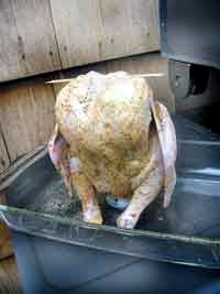 5. RUB the chicken, inside and out with Memphis rub or your choice of spices.
