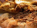Combine the flour, sugar, salt, cinnamon, and allspice in the bowl of a food processor fitted with a steel blade. Add the butter and pulse until the mixture is crumbly. Pour into a bowl and rub it with your fingers until it starts holding together. Sprinkle evenly on the apples. Gently fold the border over the apples to enclose the dough, pleating it to make a circle.