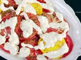 To serve arrange the tomatoes on serving plates and season with salt and pepper, to taste. Top with creamy dressing and enjoy