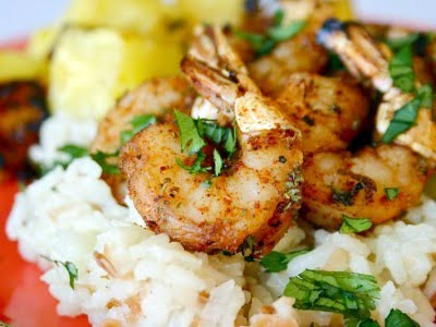 Spicy Shrimp with Grilled Pineapple & Coconut Rice Pilaf
