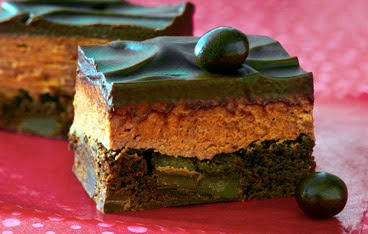 •Pour chocolate topping over filling; spread to cover bars. Refrigerate uncovered until set, at least 2 hours or overnight. For bars, cut with wet knife into 9 rows by 4 rows. Store covered in refrigerator.