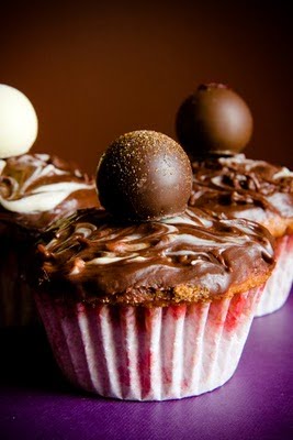 Mix 1/4 cup of the ganche into the cupcake batter.