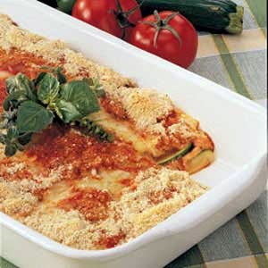 I have made this lasagna-like zucchini casserole frequently over the years and shared the recipe with many. Recently, my daughter had some heart trouble, so I adapted the recipe to cut fat and calories. We think this version is just as delicious. -Eleanor Hauserman, Huntsville, Alabama