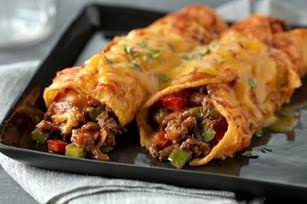 • 1/2 lb. (225 g) extra lean ground beef 1/2 cup each chopped green and red peppers 2 cups salsa, divided 1/2 cup Kraft Tex Mex Shredded Cheese, divided 2 Tbsp. Kraft Calorie-Wise Zesty Italian Dressing 8 flour tortillas (6 inch) 2 Tbsp. chopped cilantro