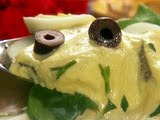 Arrange the lettuce leaves on a platter and top with the sliced potatoes. Pour the sauce over the potatoes. Garnish with slices of hard boiled egg and olives. Garnish with chopped parsley. Serve chilled or at room temperature.