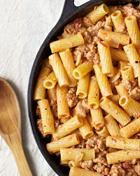 Tubes of rigatoni hold the tomato sauce, giving you a burst of creamy flavor with every bite. Use either hot or mild Italian sausage here, depending on your preference.