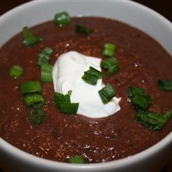Ladle soup into 4 individual bowls, and top each bowl with 1 tablespoon of the sour cream and 1/2 tablespoon green onion.
