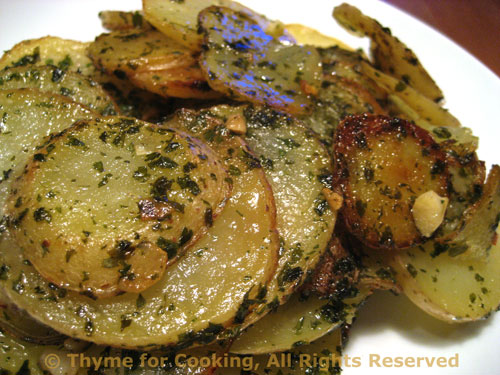 Finish cooking by turning the heat to high to brown the potatoes once again. Add the parsley. Turn them again with a spoon. Turn onto a platter and serve.