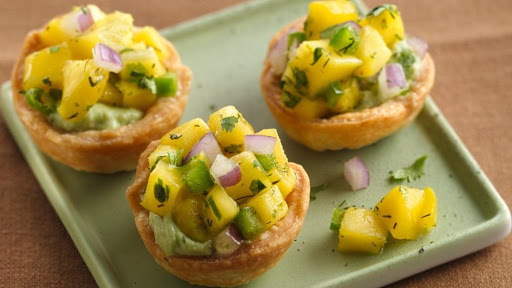 Pipe 1 teaspoon avocado mixture into each cup; top with scant 1 tablespoon of the mango salsa (cups will be full). Garnish with cilantro. Store covered in refrigerator.
