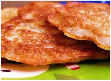 Drop two or three 1/4 cup mounds into hot oil, and flatten to make 1/2 inch thick pancakes.