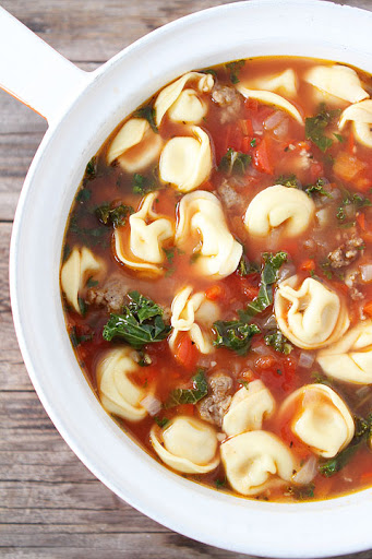 Note-you can make this soup vegetarian by using vegetable broth and omitting the sausage. Josh always ladles up my bowl first, and then adds the sausage. This soup recipe is very adaptable!