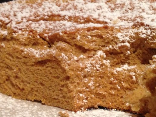 5.Let cool for 5 minutes, then invert pan. If using a pan without feet, invert onto a narrow neck bottle- hang upside down until completely cool about 1 1/2 hours. Place cake right side up and remove from pan