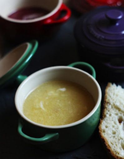 1. In a medium saucepot set over high heat, warm the chicken stock until it reaches a simmer. Keep warm.
