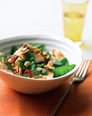 2.Add garlic, chile, snow peas, and 2 tablespoons water; cook until chicken is opaque throughout, about 3 minutes. Season with salt and pepper; stir in lime juice, peanuts, and if using, basil.