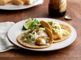 Make tacos with the tortillas and fish and top each with cream, shredded cabbage, tomatillo salsa and pickled jalapenos, if desired.
