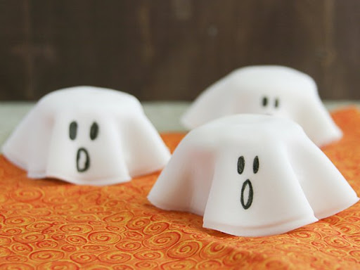 Pipe more frosting on top of each cookie stack. Place 1 fondant round on top of each stack, draping over sides and adhering to frosting on top cookie. Use edible marker to draw ghost faces.