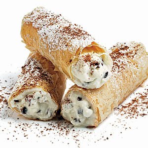 7. Finely chop 1 1/2 ounces chocolate. Combine ricotta mixture and chopped chocolate in a bowl. Transfer mixture to a large zip-top plastic bag; snip off 1/2-inch of 1 corner of bag. Pipe ricotta mixture evenly into each of 12 prepared shells (about 1/3 cup). Grate remaining 1/2 ounce chocolate. Dust cannoli evenly with powdered sugar and grated chocolate; serve immediately.