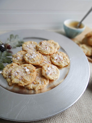 Drizzle cooled cookies with white chocolate or dip the tops of the cookies directly in to the chocolate- sprinkle with crushed candy canes and drizzle with additional white chocolate if desired.
