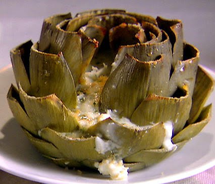 Preheat the oven to 400 degrees F. Remove the center choke of the artichokes using a small spoon. Stuff the cheese mixture into the center of the artichokes. Place the artichokes into a baking dish. Sprinkle the bread crumb mixture over the top of the artichokes. Drizzle the tops of the artichokes with olive oil. Bake until the artichokes are heated through, the cheese is melted, and the bread crumbs are crisp and golden, about 25 minutes. Transfer the artichokes to a serving dish and serve.