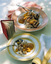 Make peach-pepper sauce: Place 1 roasted pepper and four peach quarters in the jar of a blender, and puree until mixture is smooth. Season with salt and pepper.