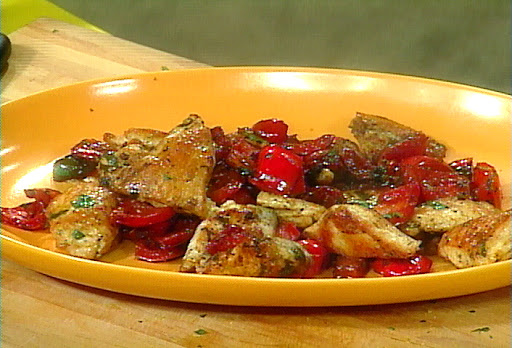 Add the wine to the pan and reduce it by half. While the wine is reducing, scrape any browned bits off the bottom of the pan. Return the sausage and chicken to the pan and add the cherry peppers, cherry pepper juice, chicken stock, and oregano. Bring to a boil, reduce to a simmer, and simmer, partially covered, for 15 minutes. Remove the lid and simmer for 5 more minutes; add more chicken stock if the stock has reduced too much.