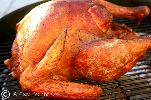 Grilling a turkey is ideal when you want powerful flavors and little prep. No brining, and all you need is salt & pepper and baking powder. Baking powder? Yes, that's right. That's the secret to getting the skin to turn out golden and crispy.