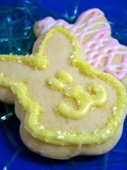 Bake for 10-12 minutes at 350F, until the edges are slightly firm to the touch but cookies are not browned (they may be slightly gold at the edges). If your cookies are smaller than the 2-3-inch size these bunnies were, you may have to decrease the baking time by a minute.