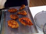 Drain chicken on a rack over a sheet pan. Don't drain by setting chicken directly on paper towels or brown paper bags. If you need to hold the chicken before serving, cover loosely with foil but avoid holding in a warm oven, especially if it's a gas oven.