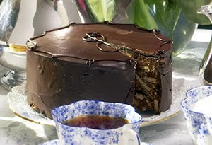 Carefully run a knife around the bottom of the cake where the chocolate has stuck to the cake wire and lift it onto a tea plate.