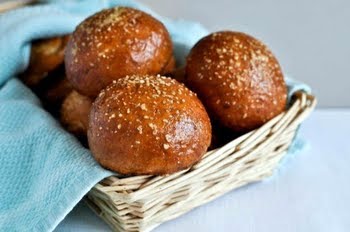 With a pastry brush, glaze each roll with the lightly beaten egg, making sure to coat all sides completely. Top each roll with a sprinkle of pretzel salt. With a sharp straight edged knife, cut a slash or “X” in the top of each roll.