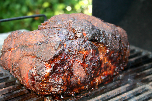 Mix ingredients and rub onto pork butt. Cook pork butt for 5 hours in 225 degree pre heated smoker using apple wood chips during the first 3 hours. After 5 hours remove butt and wrap in heavy foil. Cook for an additional 1 to 1 ½ hours. Internal temperature should be 160 degrees. Serve.