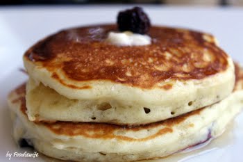 Set a griddle or frying pan on the stove over medium heat. Add some of the butter for frying; when it begins to foam, pour some of the batter into the pan to make pancakes of whatever size you wish. When bubbles form on top of the pancakes, flip them and cook until the bottoms are golden brown. Serve immediately.