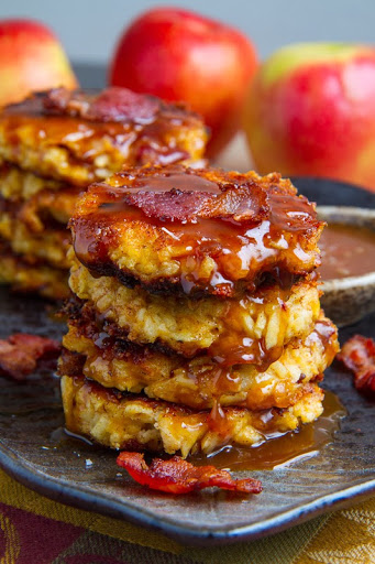 Apple, Cheddar and Bacon Fritters in Caramel Sauce