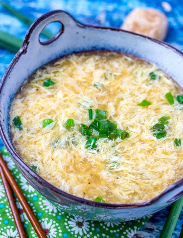 Using a whisk slowly pour in your beaten eggs into your broth and stir clockwise until all eggs are added.
