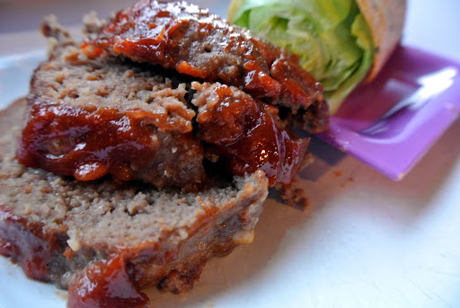 Bake the meatloaf for 1 to 1 1/2 hours until the bacon is crisp and the meatloaf is firm. Rotate the meat loaf while it's baking every now and then to insure that the bacon browns evenly. Remove the meatloaf from the oven and let it cool a bit before slicing. Serve with the remaining tomato relish on the side. Unbelievably moist!