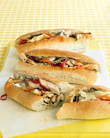 3.Top chicken and vegetables with cheese; broil until cheese is bubbling, 30 seconds to 1 minute. Scoop out most of the doughy center from both halves of rolls; discard. Spread rolls with mayonnaise; fill with chicken and vegetables. Serve immediately.