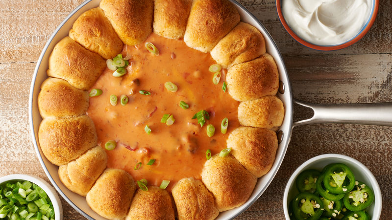 Taco, Skillet Queso Dip with Taco Biscuit Bombs