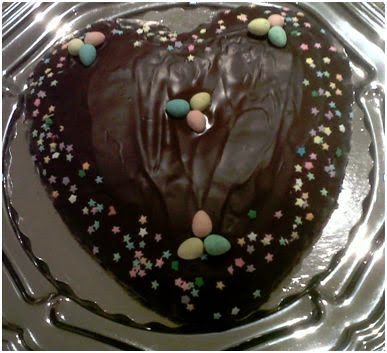 Glaze: melt chocolate, pour over cool cake. decorate.