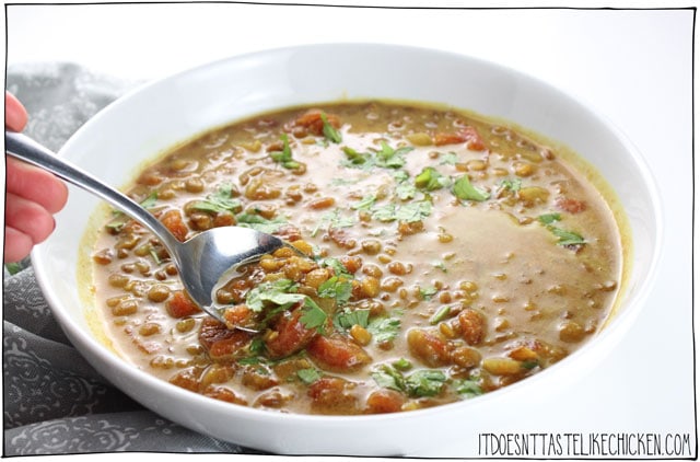 This is an easy hearty and satisfying soup with rich and aromatic spices, and coconut milk. Wonderful freshly made but it also holds up well and gets even better the next day, making it perfect for a make ahead meal.