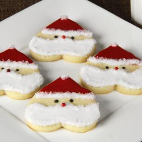 Roll out dough to ¼ inch thickness and cutout Santa faces using heart shaped cookie cutter. Bake as directed.