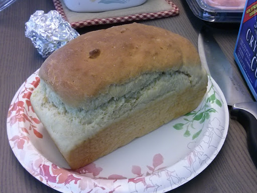 Bake for 20 minutes at 400, and then turn the heat down to 375 for another 10-15 minutes. The bread should look a light golden brown. Take it out the oven, remove from its baking pan, and leave on a cooling tray for a while.