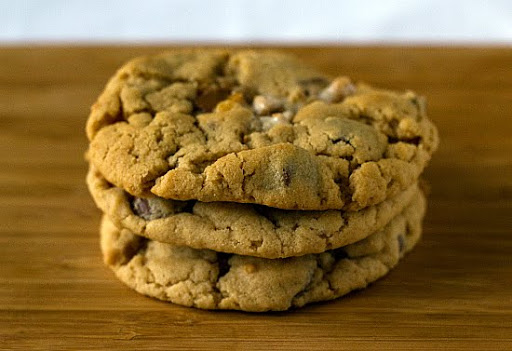 5. Drop by heaping tablespoons onto the prepared baking sheets. (I weighed mine out to about 2 ounces of dough per cookie.) Gently flatten each cookie ball with the palm of your hand. Bake for 10-11 minutes, or until cookies are slightly brown on the edges.