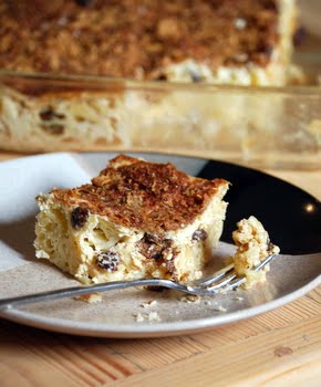 Spread egg noodles into the prepared baking dish in an even layer. Sprinkle raisins over noodles.
