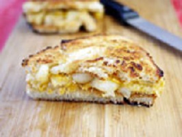 PLACE cheese strips on outside perimeter of 4 slices of bread. Spoon apple mixture evenly into centers of each. Top with remaining slices of bread; press down slightly. Brush sandwiches with butter.