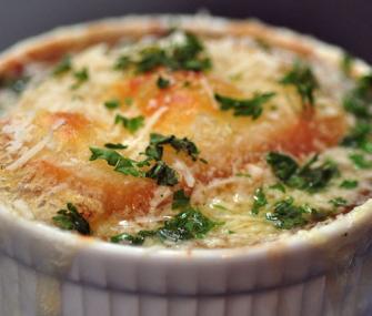 French Onion and Mushroom Soup with Bourbon and Swiss Cheese